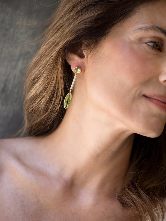 LEMON QUARTZ AND PERIDOTE EARRINGS 28ct