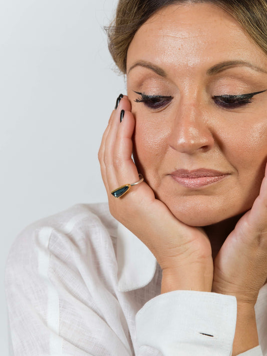 BLUE TOPAZ, TANZANITE AND AQUA MARINA 12,5ct RING