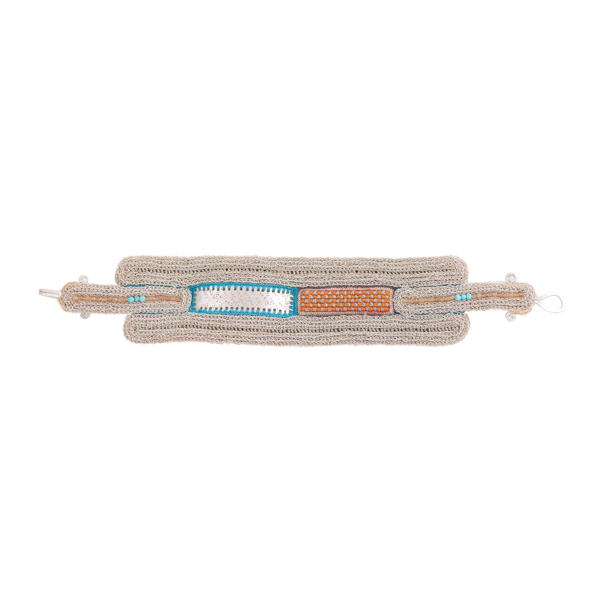 HANDCRAFTED SILVER BRACELET WITH SILK AND SEMIPRECIOUS GEMS.