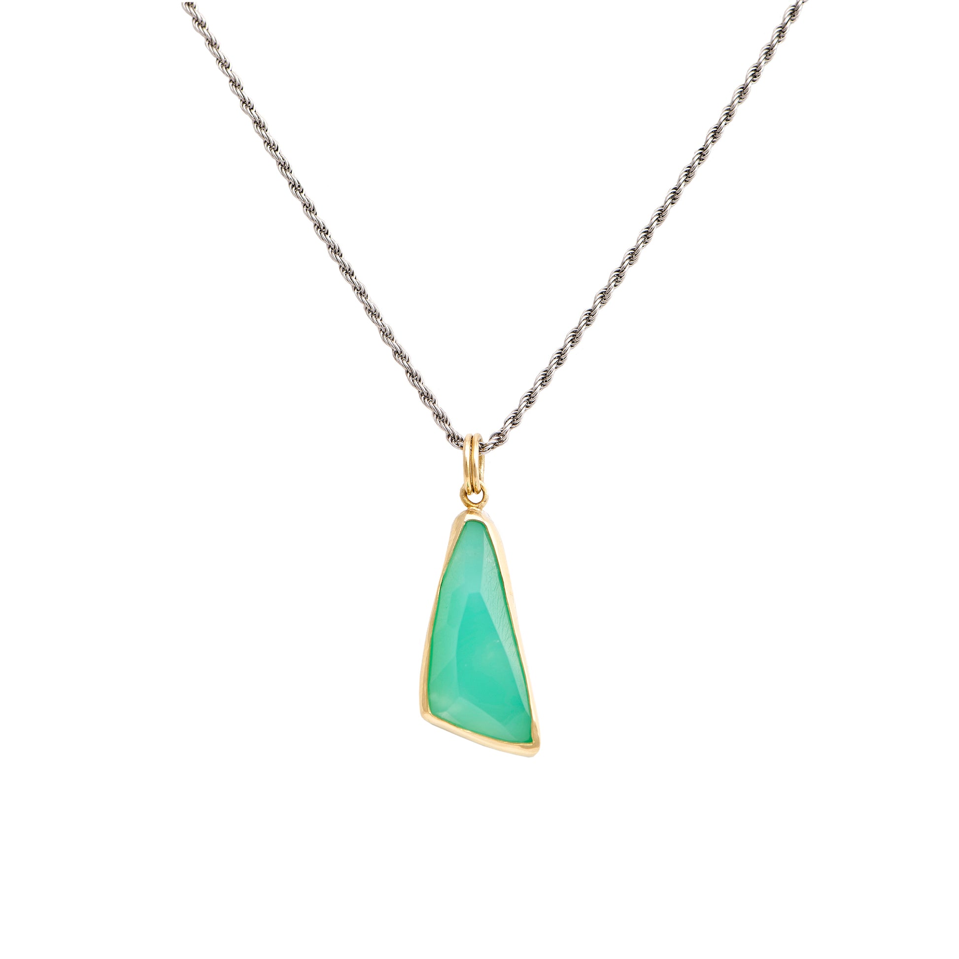 CHRYSOPRASE 10ct PENDANT WITH 18k AND STERLING SILVER.